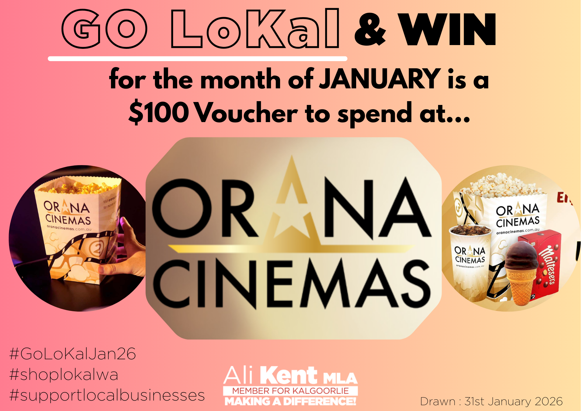 This month we are starting with a $100 voucher to Orana Cinemas, Kalgoorlie!